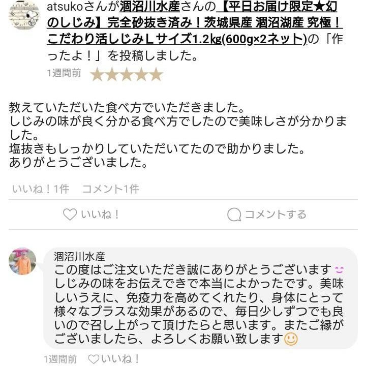 atsuko様からレビューをいただきました!【砂抜きがしっかりしてあった】